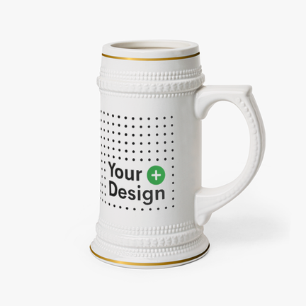 Perfect for creating a more authentic drinking experience, whether in a bar or at home. These 22oz white stein mugs are made from 100% ceramic. The mugs are treated with an ORCA coating that makes sure your original designs are printed in vibrant colors and high resolution.