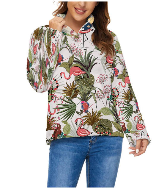Custom Hoodie All Over Print Women's Flannel Pullover Turtleneck Hoodie