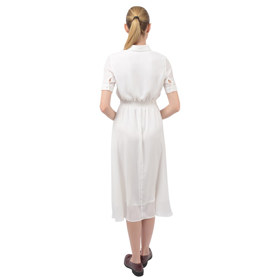 Our chiffon range's new addition midi dress that comes with a cutout neckline. Design it with your favorite prints and artwork to create the perfect dress.