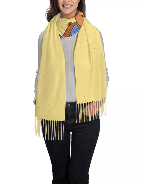 This scarf is made of polyester, with tassel embellishments, providing a soft and comfortable texture that is gentle on the skin. The tassels add a touch of fashion and texture to the overall design.