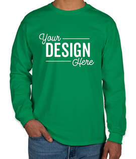 This Gildan Ultra Cotton Long Sleeve T‑shirt will easily become your group's favorite long sleeve t‑shirt for those cool, crisp days. It's made from thick 100% cotton which is durable enough for whatever event you throw at it. Color run. Spartan race. Kids' birthday party with a bounce house. This shirt can handle it all.