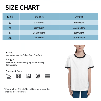 【Performance】This youth color contrast short-sleeved T-shirt is made of high-quality pure cotton fabric, breathable and comfortable, soft to the touch, classic round neck design, moderate length, loose fit. The neckline and left and right cuffs are designed with black edge contrast color, which is fashionable and generous, suitable for teenagers to wear at home, school indoor and outdoor sports and other occasions.