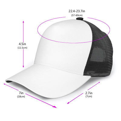 Description: The front and brim of this hat feature a full-print design, made with high-quality 100% polyester material. The slanting weave is soft and comfortable, while the hat's structure is firm and stylish. The reinforced top and oxford lining make it durable, and the breathable mesh fabric at the back keeps you cool and dry. The sweatband inside wicks moisture away and provides a comfortable fit. The adjustable buckle at the back lets you adjust the size to your preference. This versatile hat is perfect for everyday wear, outdoor activities, sports, and travel. Hand wash only and do not bleach. Please note that measurements may vary by 1-2cm due to different measuring methods.