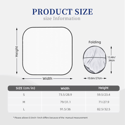 【Instructions】Simply unfold the product and place it horizontally or vertically on the front windshield. Lower the sun visor to secure it in place. When not in use, twist it into a small circle, fasten with the elastic band, and store it in the drawstring bag.