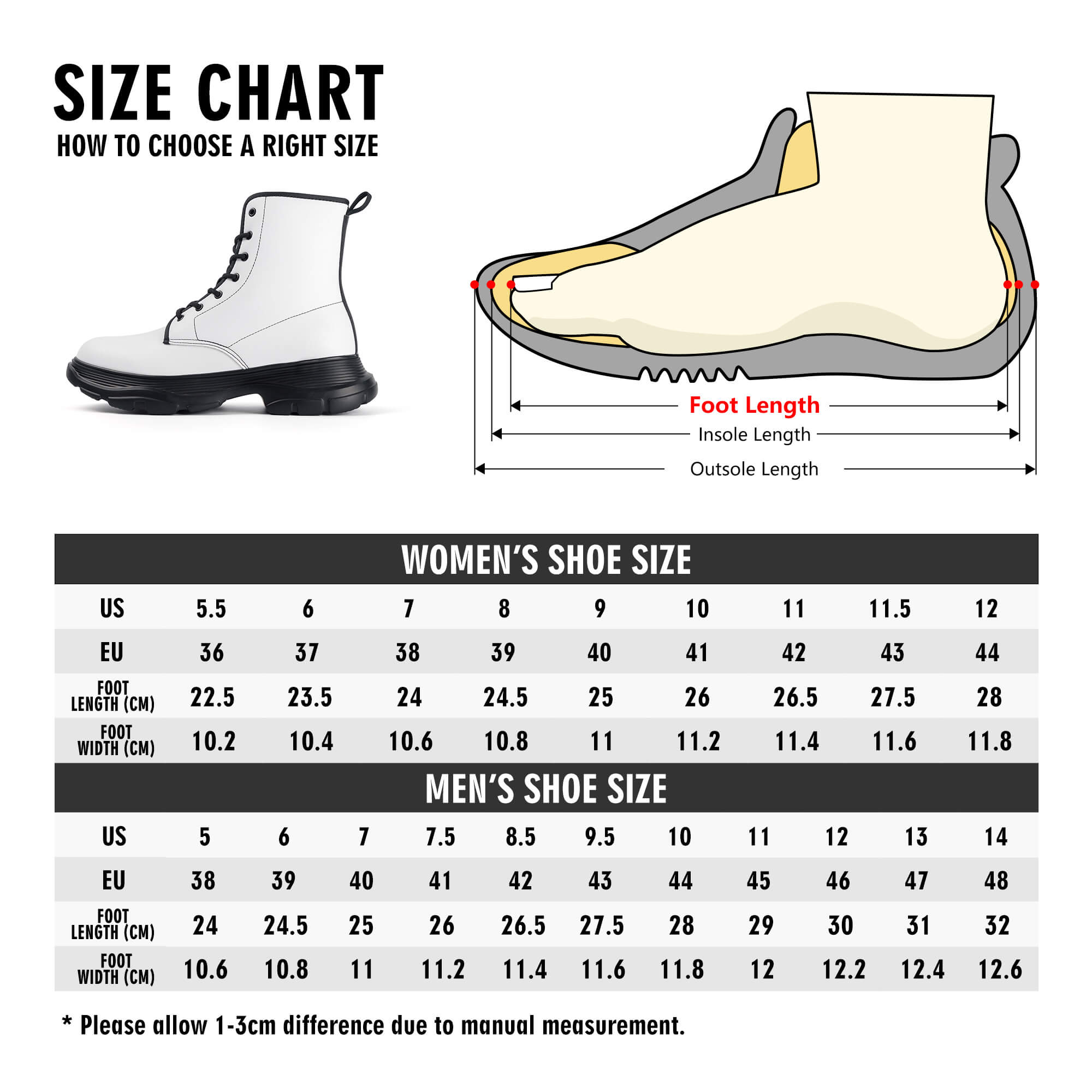 • Lightweight rubber, eco-friendly PU upper and EVA outsole for chunky boots.