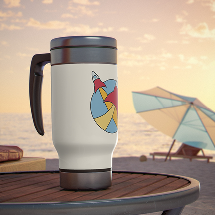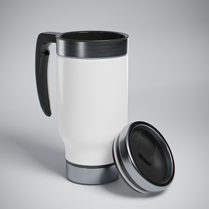Take to the great outdoors with your favorite beverage in hand, all thanks to these custom stainless steel travel mugs. Each mug holds 14 oz. of your favorite beverage and is made with adventure-friendly stainless steel. With a glossy white enamel finish, a spill-proof and snap-on cap, as well as a lined-in insulating plastic, this mug combines character with an explorer's favorite; practicality.