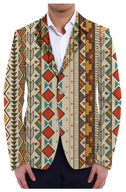 All Over Print Men Casual Suit Blazer Coat Fashion Light Coat (lapel)
