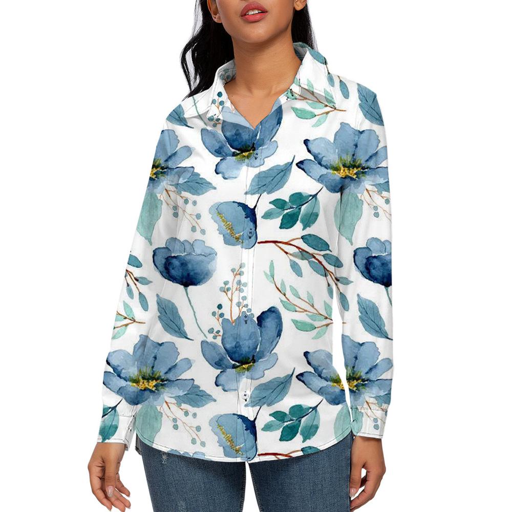 Custom All Over Print Women's Long Sleeves Shirt with Button